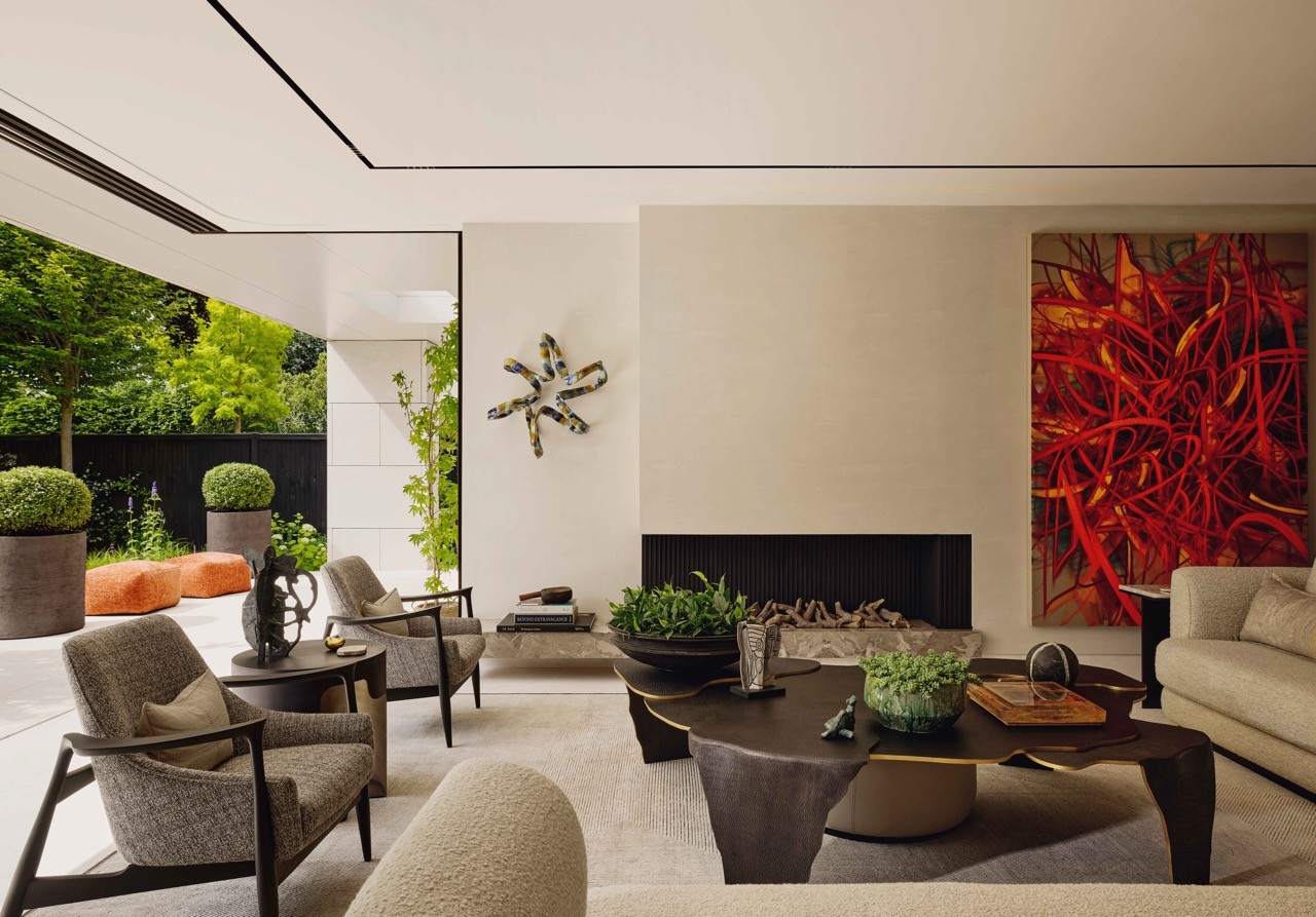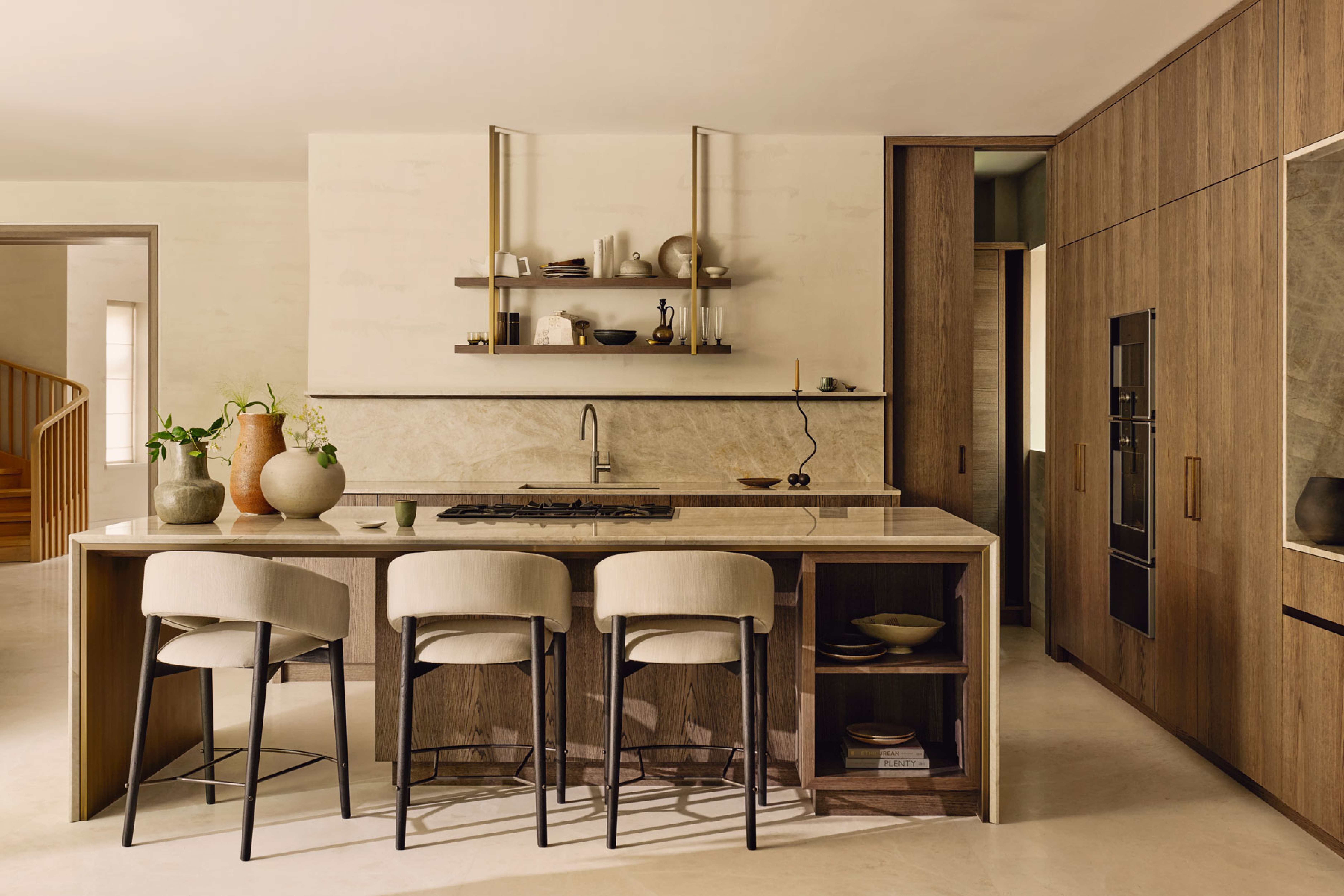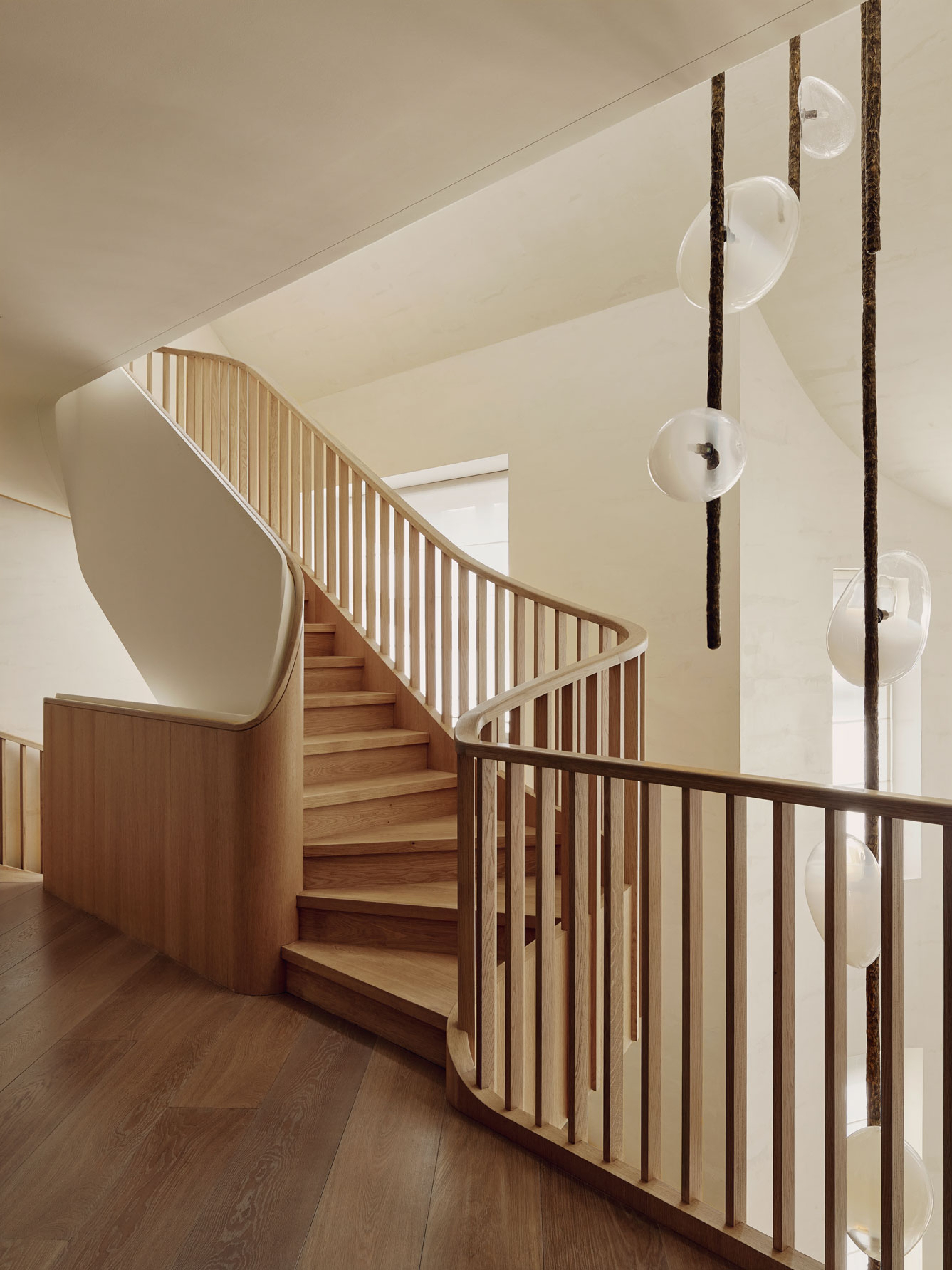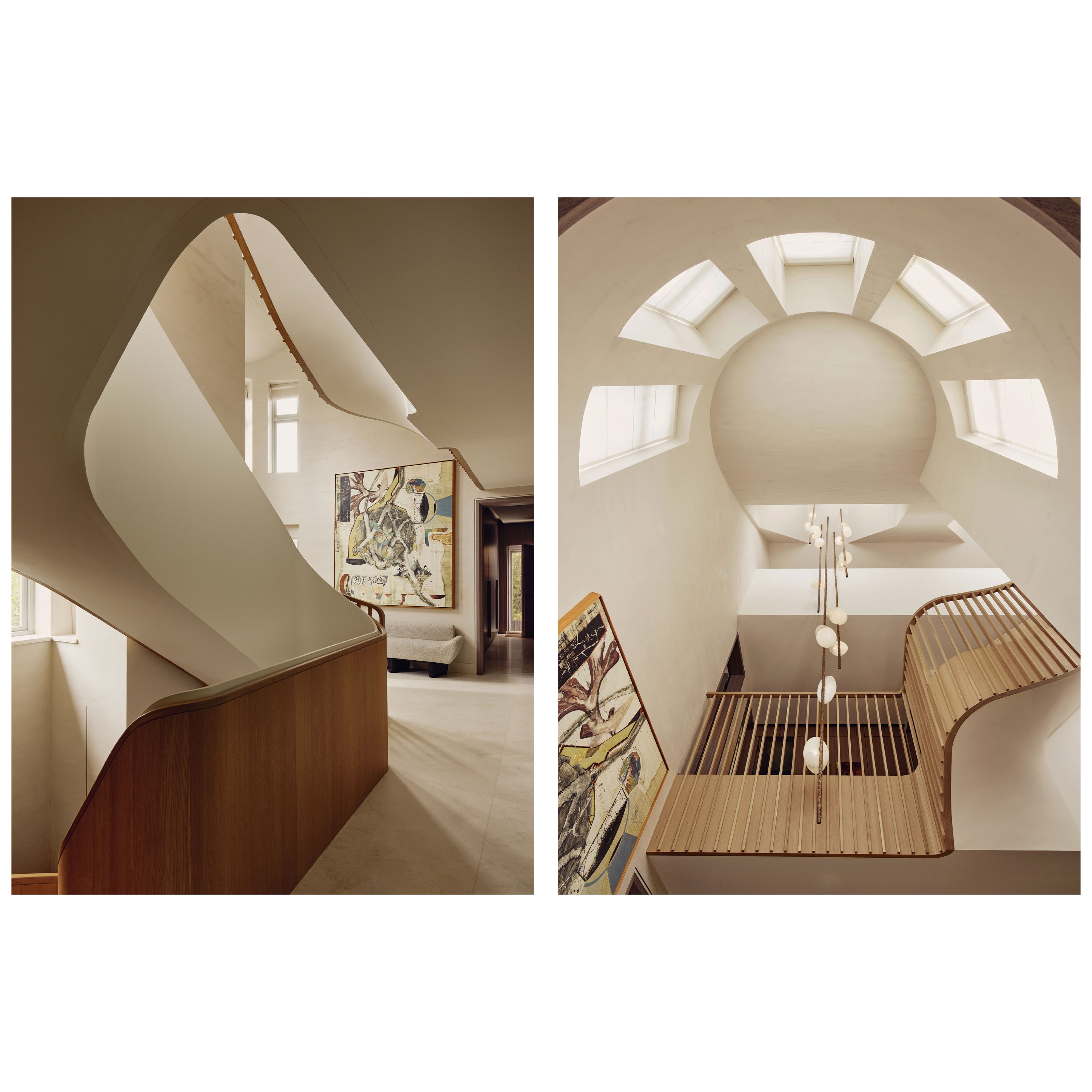 When you enter this home in Wimbledon, you are immediately met with a sense of warmth. Given the often-muted English light, the palette was kept minimal and bright to ensure clarity and comfort throughout the interiors. To the right of the entrance, the staircase establishes the home’s architectural language—its sweeping form, precise detailing and controlled lighting setting a sculptural yet understated tone.