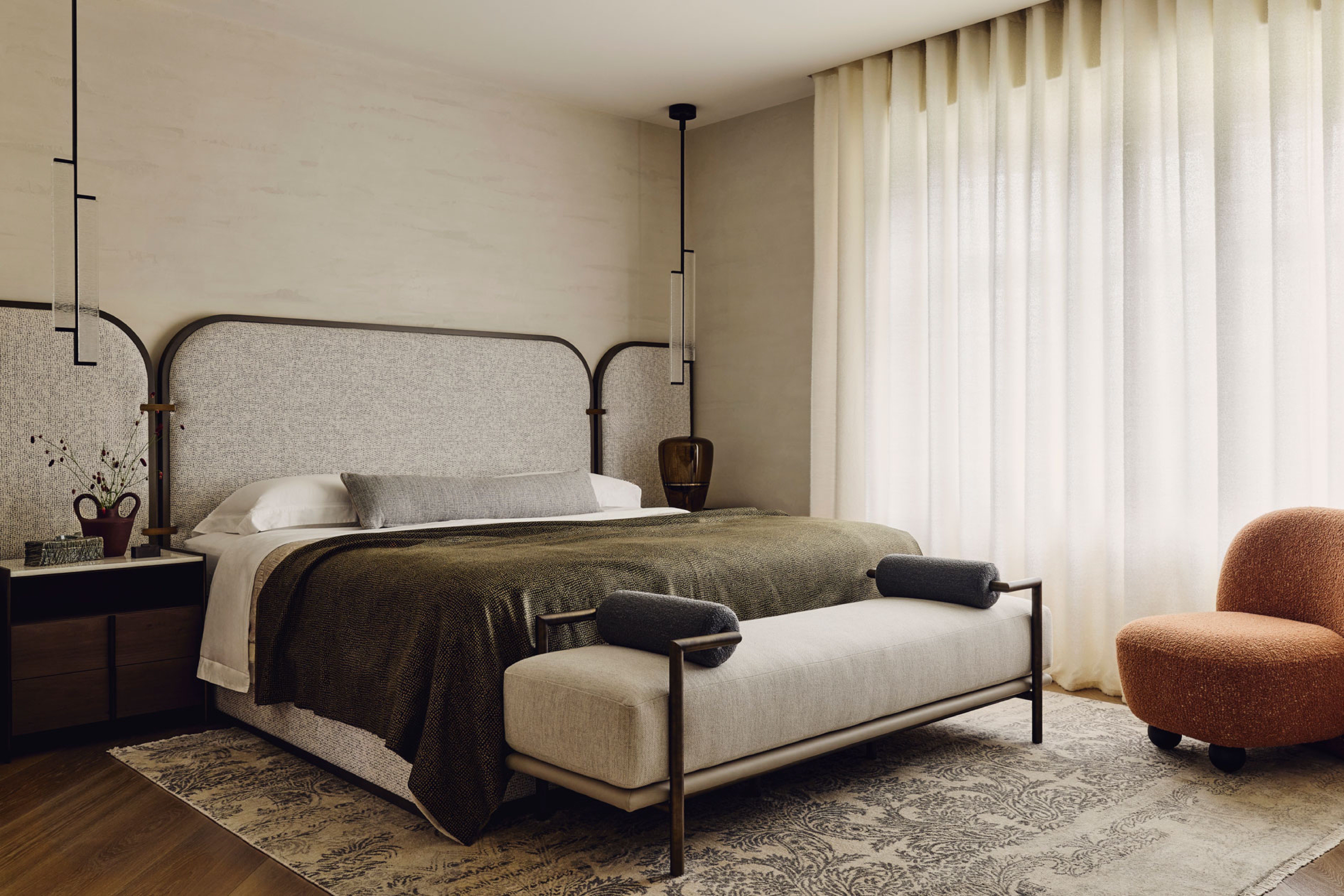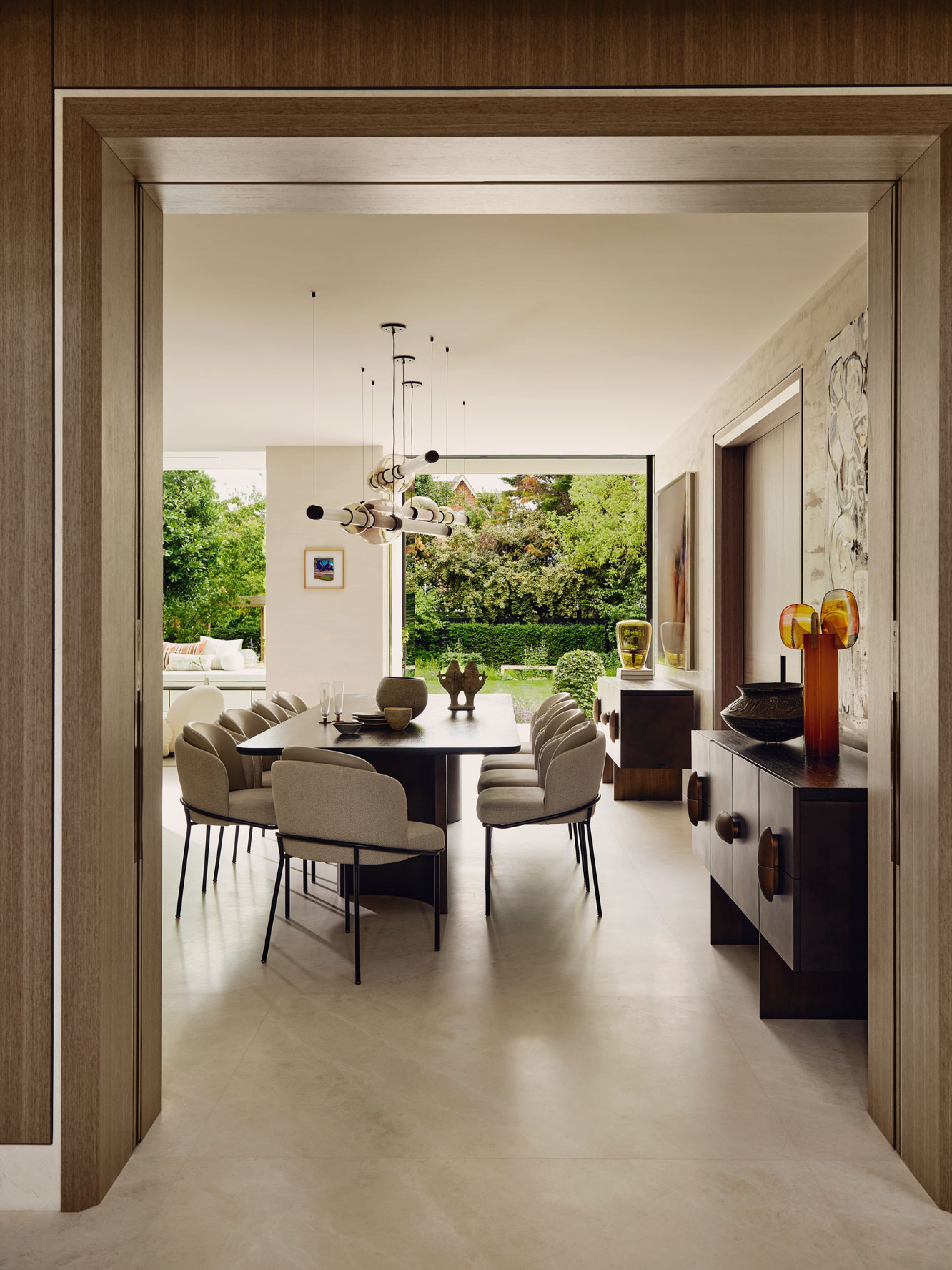 Private spaces occupy the first floor, with further rooms in the attic, completing a home that is cohesive, measured and finely calibrated.